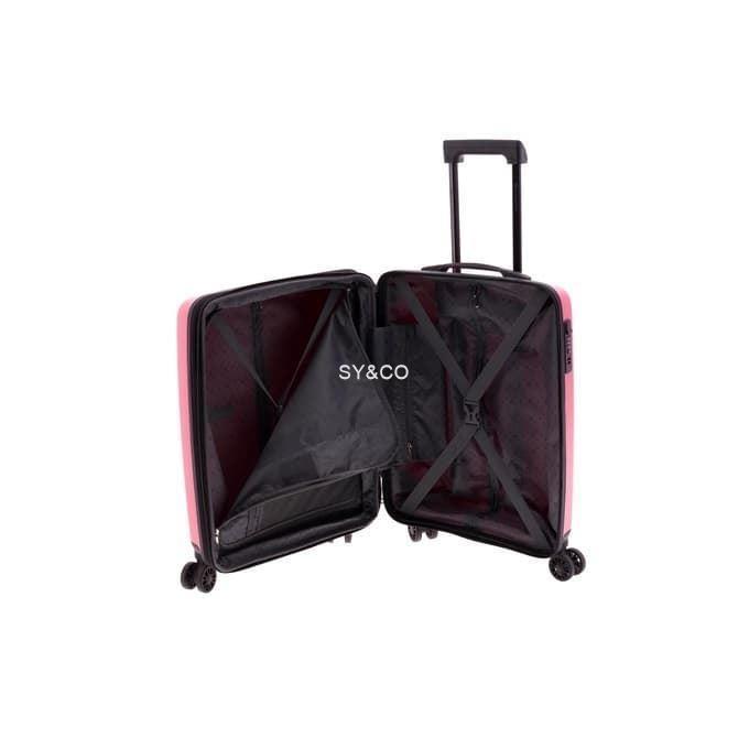 Esta maleta esta fabricada en Polipropileno resistente, ecofriendly y un diseño frontal original. Con sus 4 ruedas dobles de giro 360º, hacen que esta maleta de cabina sea muy fácil de llevar.