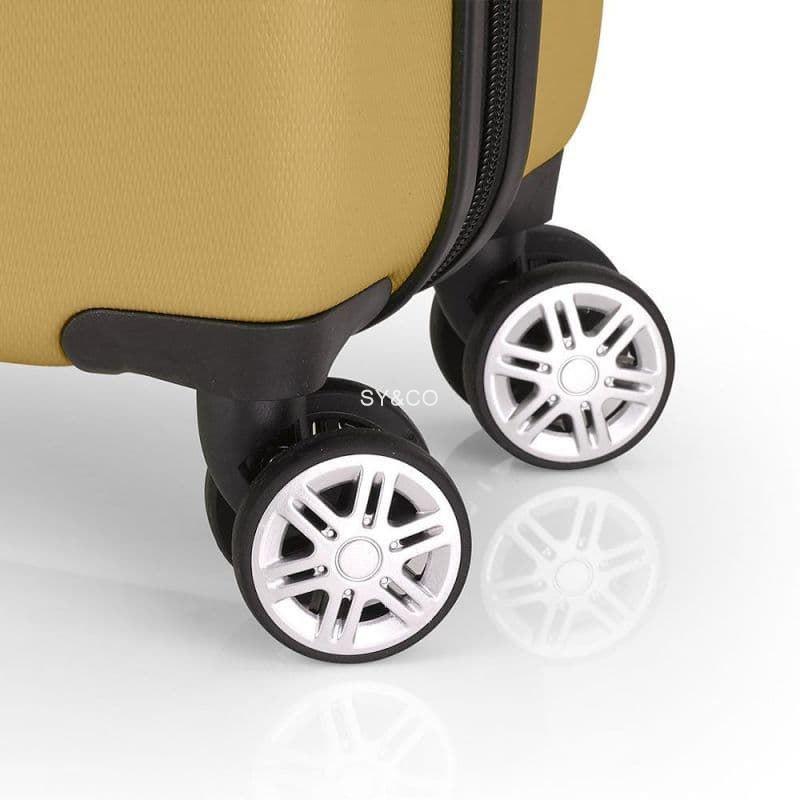 Maleta de tamaño mediana rígida, con capacidad de hasta 70 L y 4 ruedas dobles. El material de fabricación es ABS y su interior está compuesto por un forro de alta calidad y separador interior. Cerradura TSA.